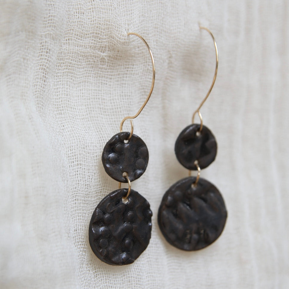 Ceramic pendant earrings in Black Walnut with 14k gold-filled ear wire.